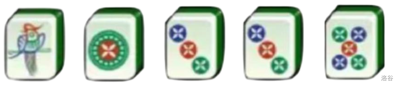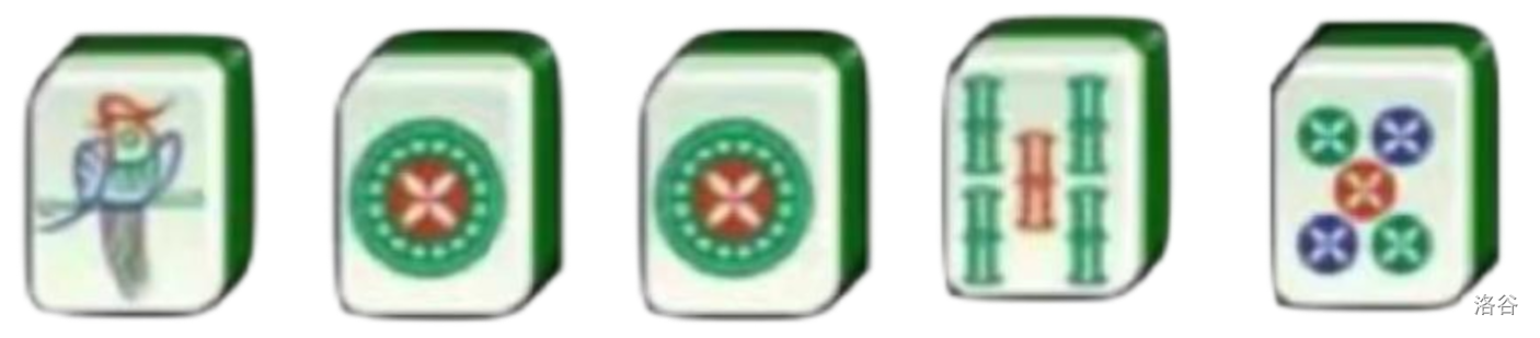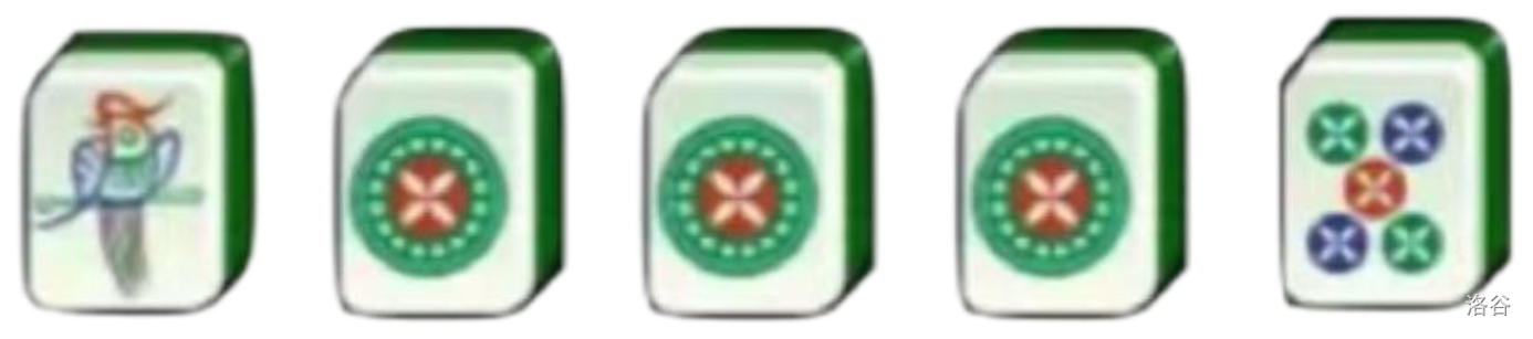Four_of_a_Kind):手牌中有四张牌的点数相同,另外一张牌点数不同,即点数形如A A A A B,图 8 是四张这一牌型的示意图。