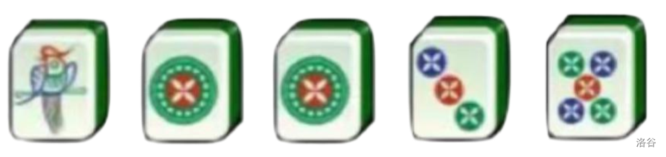 Three_of_a_Kind):最终的牌型中有三张牌的点数相同,其他两张牌的点数互不相同且均与三条的点数不同,即点数形如A A A B C,图 5 是三条这一牌型的示意图。