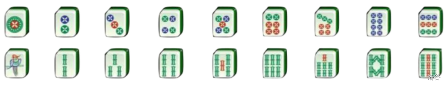 张牌,下图是圆筒牌(第一行)和条纹牌(第二行)的样式示意图。